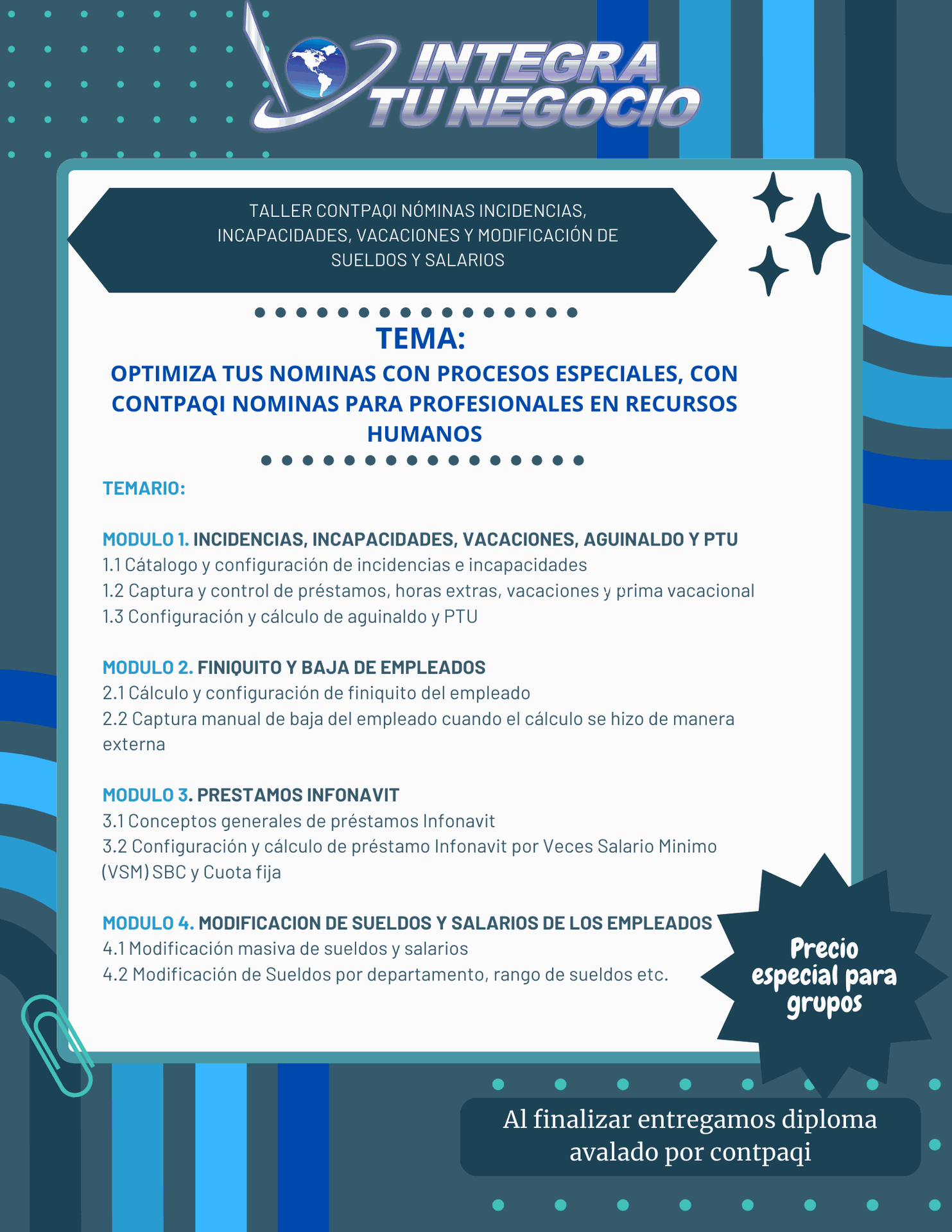CONTPAQi Nóminas Incidencias, Incapacidades, vacaciones y modificación de Sueldos y Salarios
