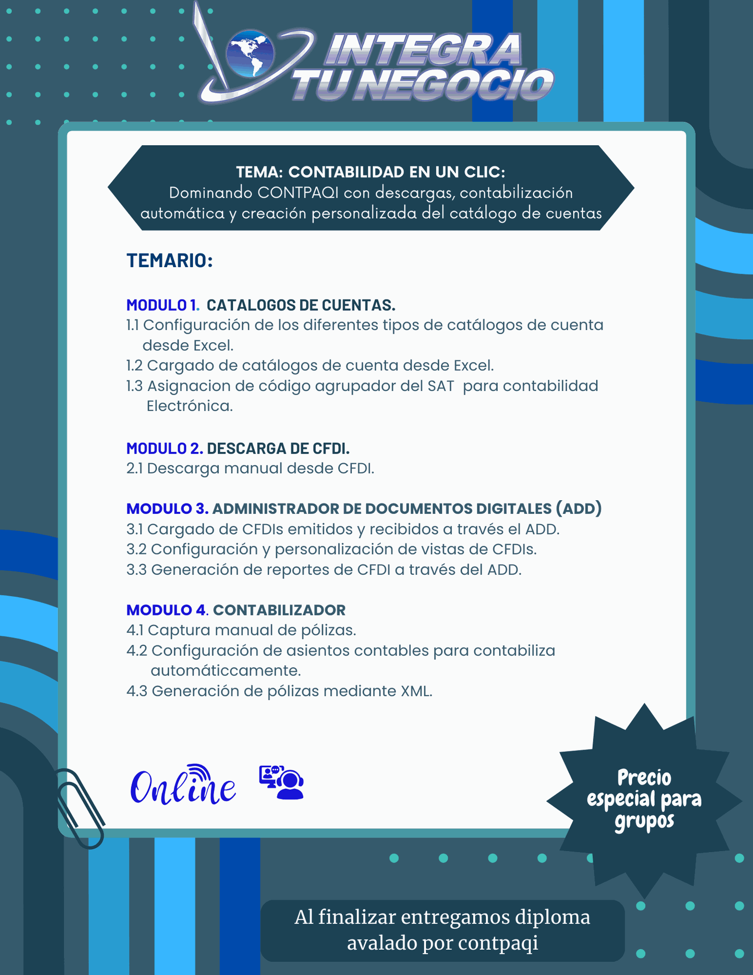 Taller CONTPAQi Contabilidad Catálogos, Descarga CFDIs, ADD y Contabilización Automática.