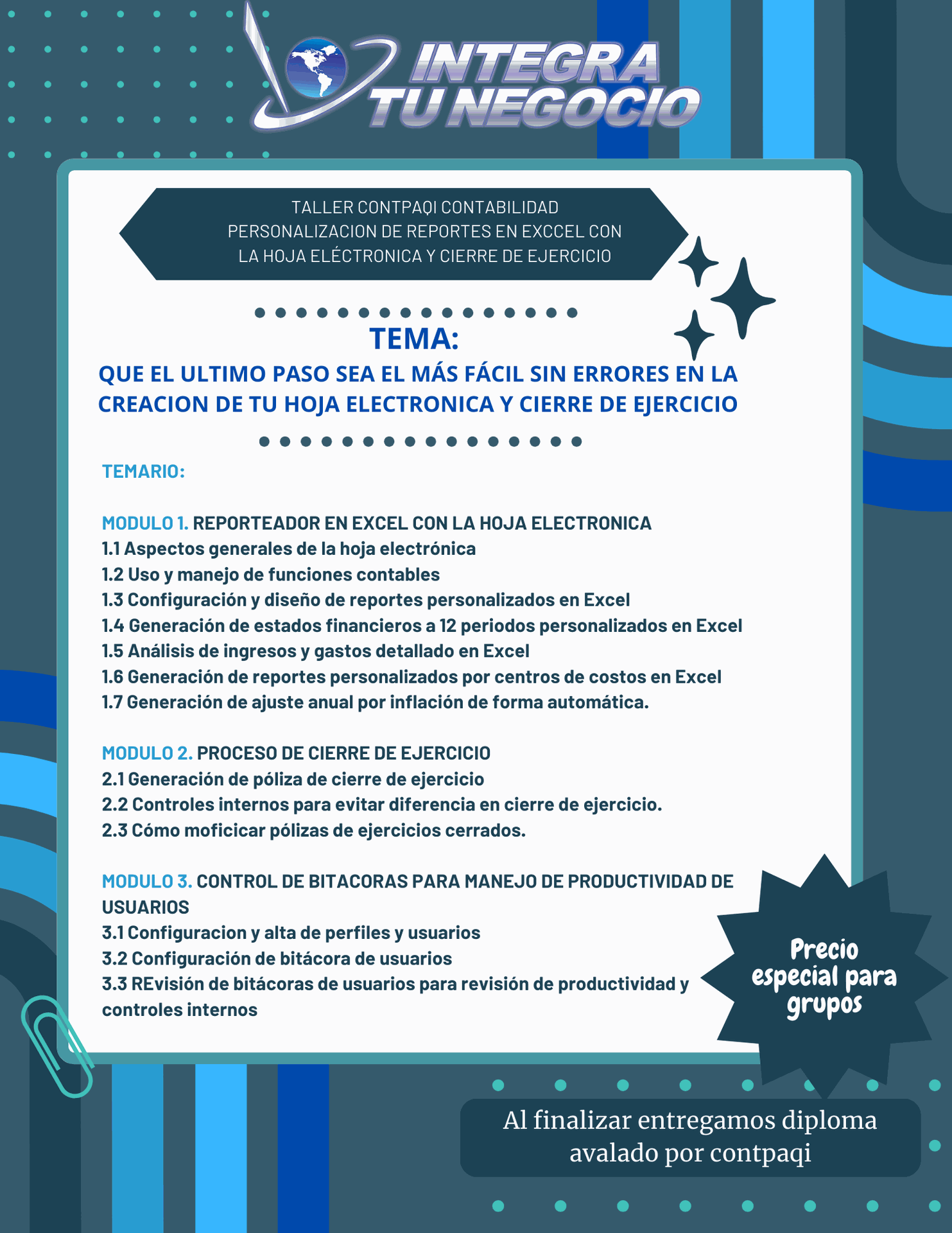 Taller CONTPAQi Contabilidad Personalización de reportes en Excel con la Hoja Electrónica y cierre de ejercicio.
