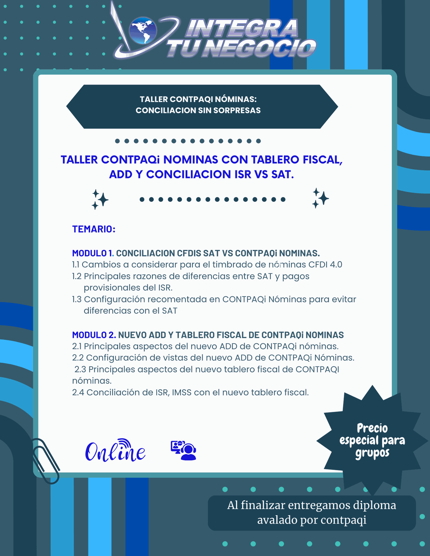 Taller CONTPAQi Nóminas Tablero Fiscal, ADD, conciliación ISR vs SAT.